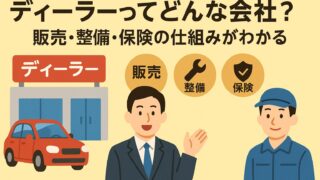 自動車ディーラーの仕事とは? ディーラーの仕事とは?3本柱(販売・整備・保険)でわかる全体像 整備士・営業・保険・事故対応を経験した筆者が、ディーラーの仕事を3本柱(販売・整備・保険)から徹底解説。仕組み、役割、事故対応まで“現場のリアル”がわかる総合ガイド。 2025.11.26 自動車ディーラーの仕事とは?