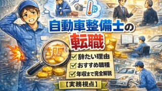 40代整備士の転職は本当に厳しいのか?家族を守るために年収を落とさず転職する方法を解説。EV化や業界構造の不安、設備保全・技術営業など現実的な転職先、失敗しない判断基準とキャリア相談の活用方法まで分かりやすくまとめました。