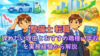 整備士の転職はするべき?体力・年収・将来性の3軸で判断する方法を解説。営業・設備保全などの転職先や失敗しないポイントも実務経験ベースで紹介。まずは無料でキャリア相談して選択肢を確認できます。