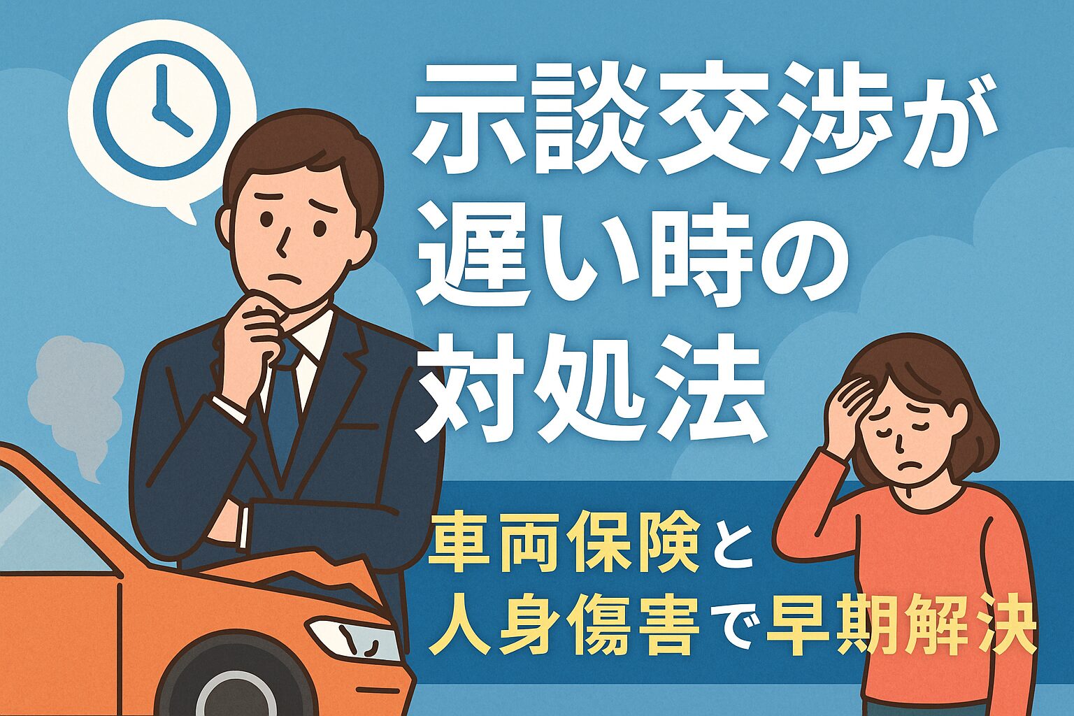 本記事では、示談が遅れる主な原因と、車両保険・人身傷害を活用してリスクを回避する方法を解説します。さらに、弁護士特約や第三者機関の利用による交渉加速策、そして**保険会社を選ぶ際のポイント(担当者の専門性・対応体制・実績)**についても詳しく紹介します。