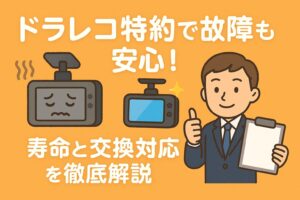 → はい。通信型ドラレコ特約では、機器故障時に無償交換できる保険会社が多く、熱による不具合も対象となる場合があります。